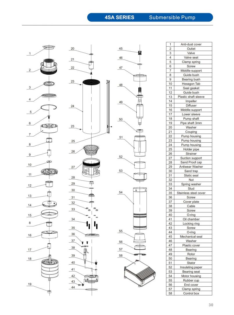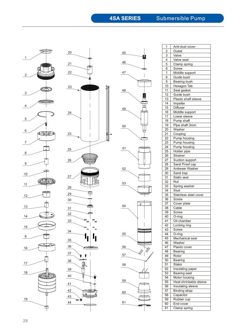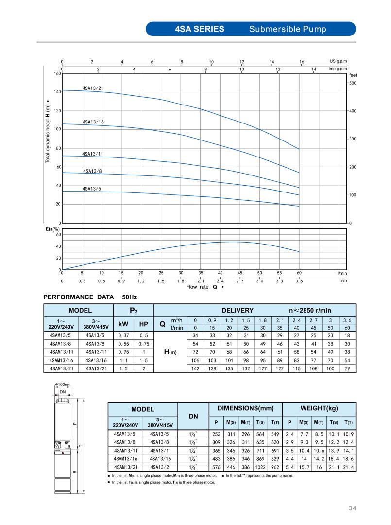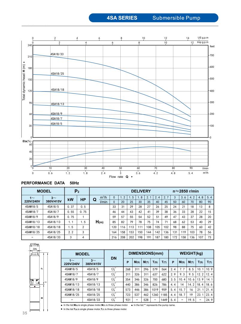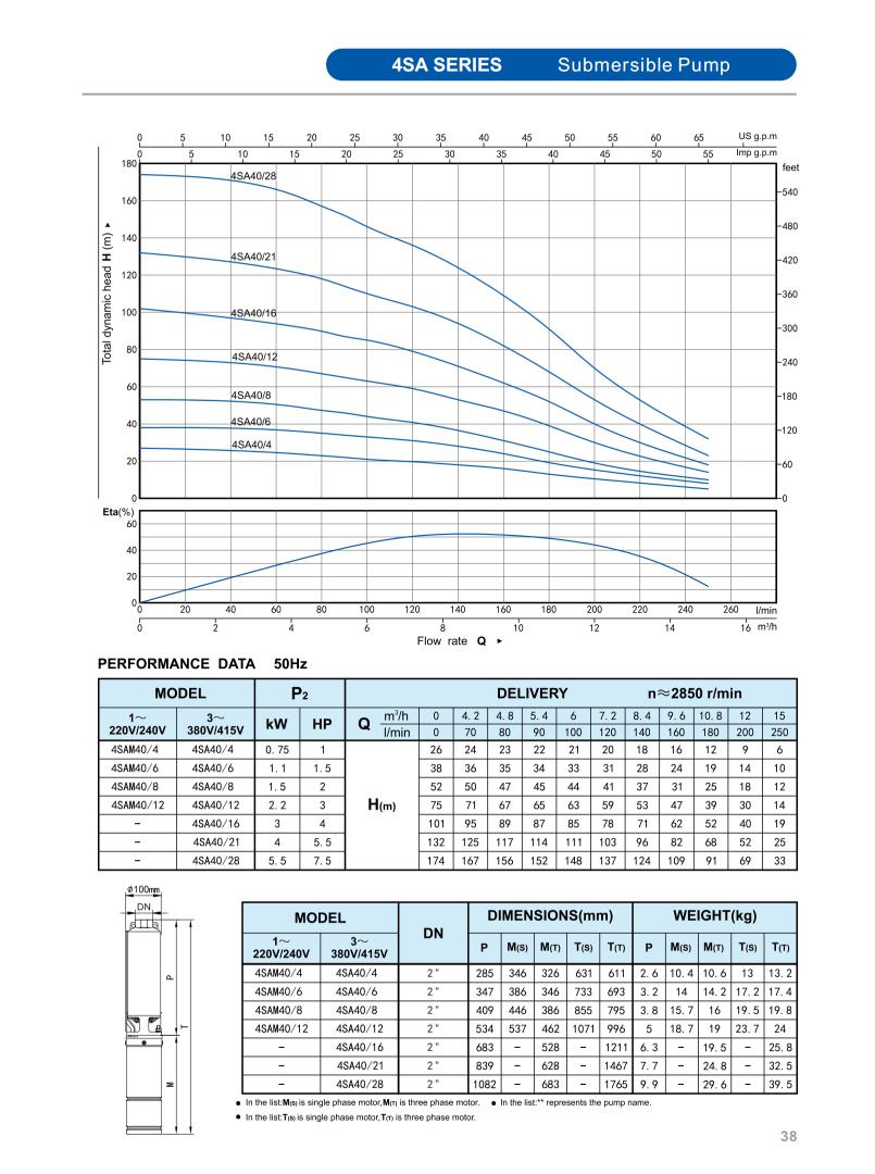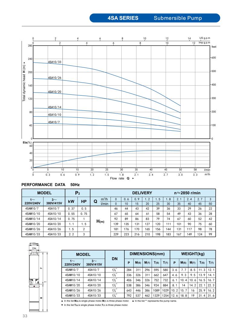 4SA series submersible deep well pump is a type of pumping equipment specifically designed for underwater operation in deep wells. Composed of a hermetically sealed motor and a pump body, these pumps work synergistically to deliver water to the surface.
