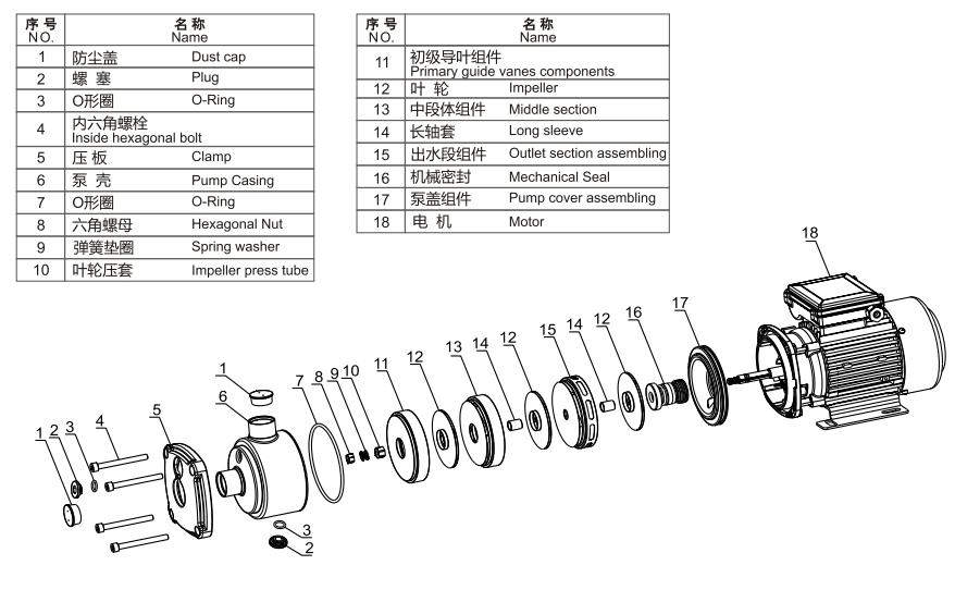 all stainless steel materialمضخة طرد مركزي أفقية متعددة المراحل من سلسلة CMI