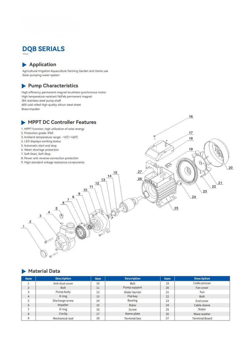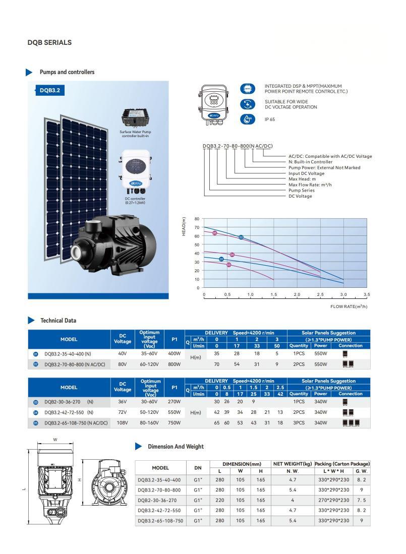 DQB serials solar pump igh efficiency permanent magnet brushless synchronous motor,304 stainless steel pump shaft,brass impeller.