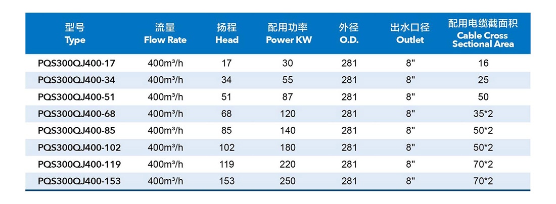Stainless steel submersible pump is POS.QJ well with the submersible pump into the water directly connected to one working tool. The utility model has the advantages of small volume, light weight, excellent performance, high efficiency and energy saving, convenient and reliable operation, etc.