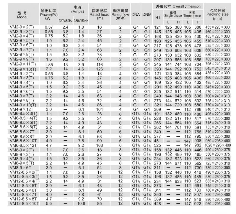 VM2-9X2(T)عيار مستورد (DN) :