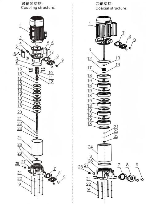 رسم توضيحي لتفكيك المضخة: