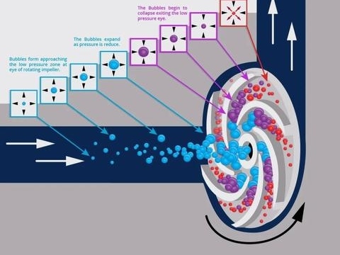 ستؤثر الموجة النفاثة الدقيقة والموجة الصدمية الناتجة عن انفجار الفقاعة بشكل متكرر على الدافع وغطاء المضخة ومكونات التدفق الأخرى، مما يتسبب في حدوث تآكل وحفر تآكل، وفي الحالات الخطيرة، تشكل ثقوبًا على شكل قرص العسل أو حتى الاختراق.